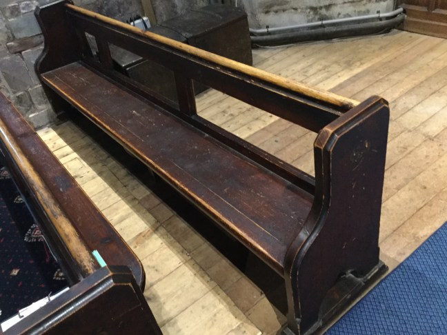 There are still just a few pews needing to find new homes. There is just one complete one left and a few with only a good left / right end that are being sold as a pair (same price for the pair as for the complete pew) and require a bit of DIY. The added appeal here is that you can make the finished pew any length you want before warming yourself by a quality fire of 1863 fire wood! They are priced at £150.