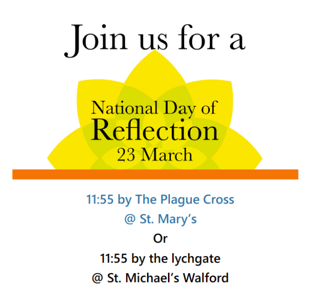 Please join us as we remember all those that have been lost in this pandemic and give thanks for all those who have worked so hard through it. 11.55 am either at the Plague Cross in Ross Churchyard or in the churchyard in Walford. Alternatively, The Ross service will be live streamed on Facebook.