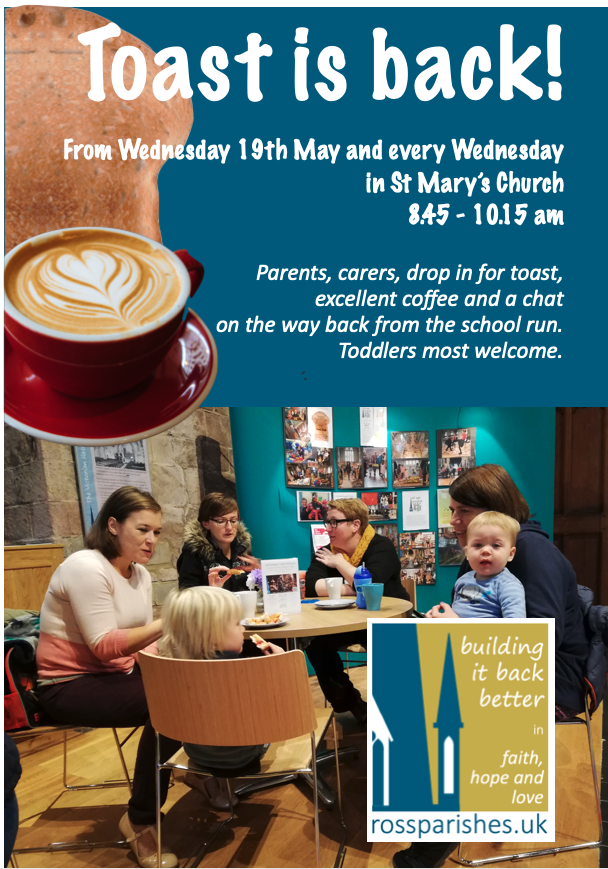 It’s half term but Toast and Toddle is still running at St Mary’s as usual. We look forward to seeing you!