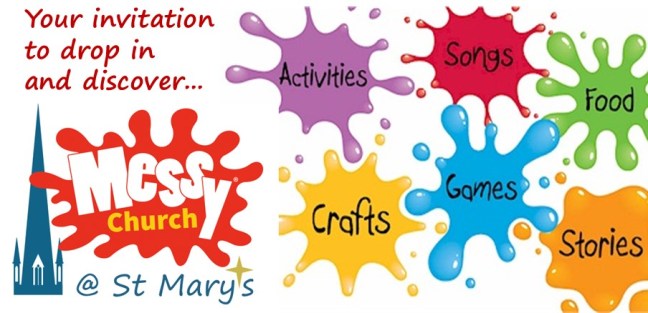 Messy Church @ St Mary’s celebrates the start of a new school term with a Messy Drop-in Morning. 11am- 12.30 on Thursday 2 September.