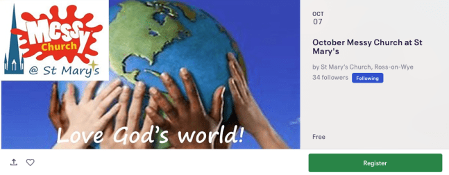 God’s world is wonderful! Let’s celebrate it and care for it together! Messy crafts, music, story, activities, prayer, food, friends, fun!