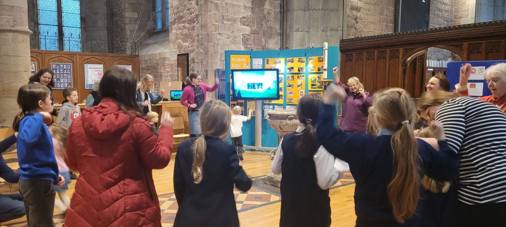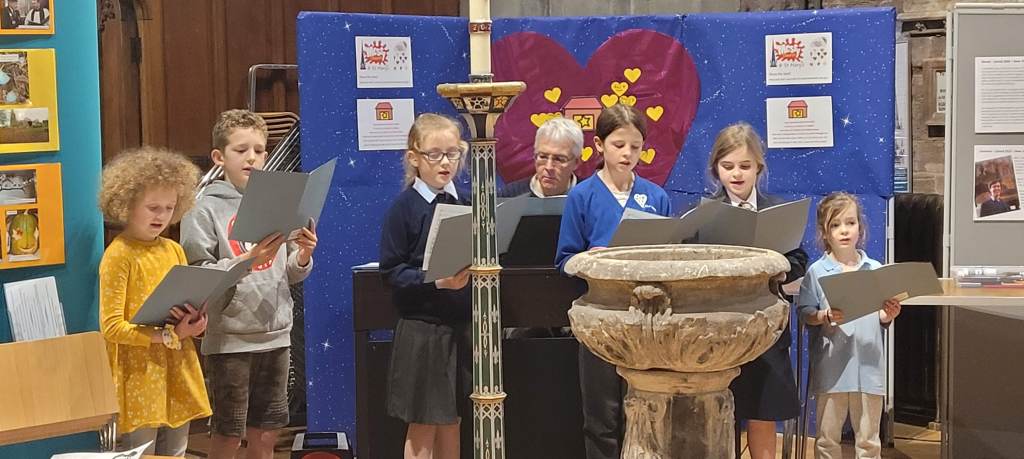 February Messy Church was all about love. After our messy crafts, we talked about how God loves us and how we love each other. We sang songs, heard Tiffany tell us the story of Mary, Martha and Jesus, listened to the Youth Choir and prayed with Ann.