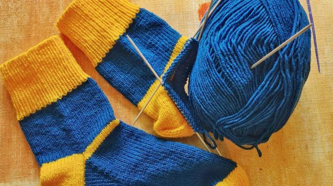 Men, please bring in a pair of socks, a pair from their own sock drawer would be perfect (you don’t have to knit them and they don’t need to be blue and yellow!).