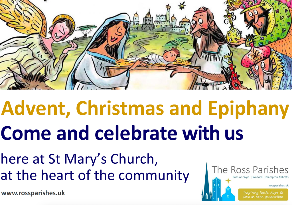 Full details of what’s on in and around all three of our churches (Ross, Walford and Brampton Abbotts) over the coming week can be found on our website – https://rossparishes.uk/christmas-2022