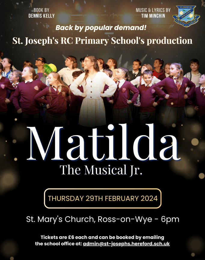 Tickets are £6 and can be reserved by email at admin@st-josephs.hereford.sch.uk or probably bought on the door on the night (subject to availability).