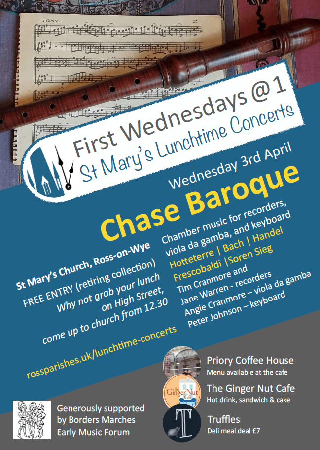 We begin our summer concert series, First Wednesdays @ 1 on Wednesday 3rd April with a concert by Chase Baroque.