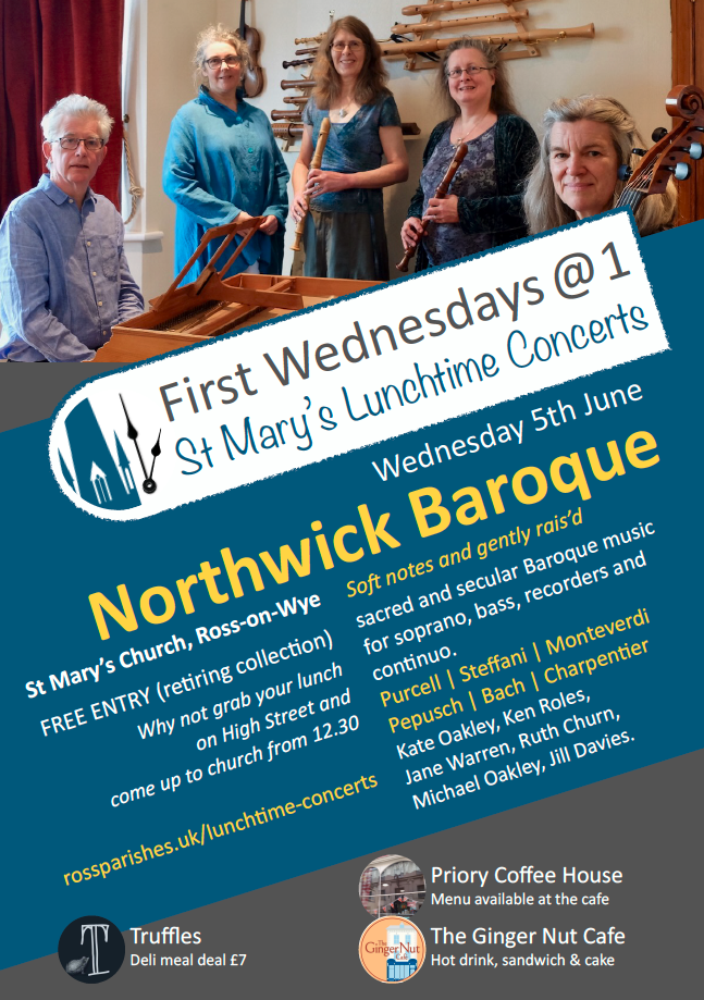 this month we welcome Northwich Baroque with a truly European, 45 minute programme of music by Purcell, Monteverdi, Bach, Charpentier and others.