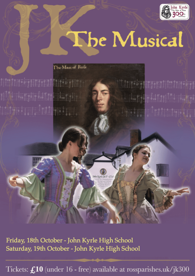 The two performances of John Kyrle: The Musical take place this weekend (Friday 18th & Saturday 19th October – 7.30pm, both at John Kyrle High School. This is a whole community production, mainly the work of students from across Ross’s schools with several members of St Mary’s Youth Choir are taking part.
