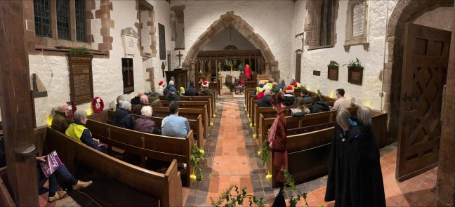 The service was observed by four wooden angels, behind the altar, which were removed several years ago for building work to be done; they reappeared miraculously on Sunday – no one quite knows how. Perhaps it’s a Christmas miracle. Any ideas?