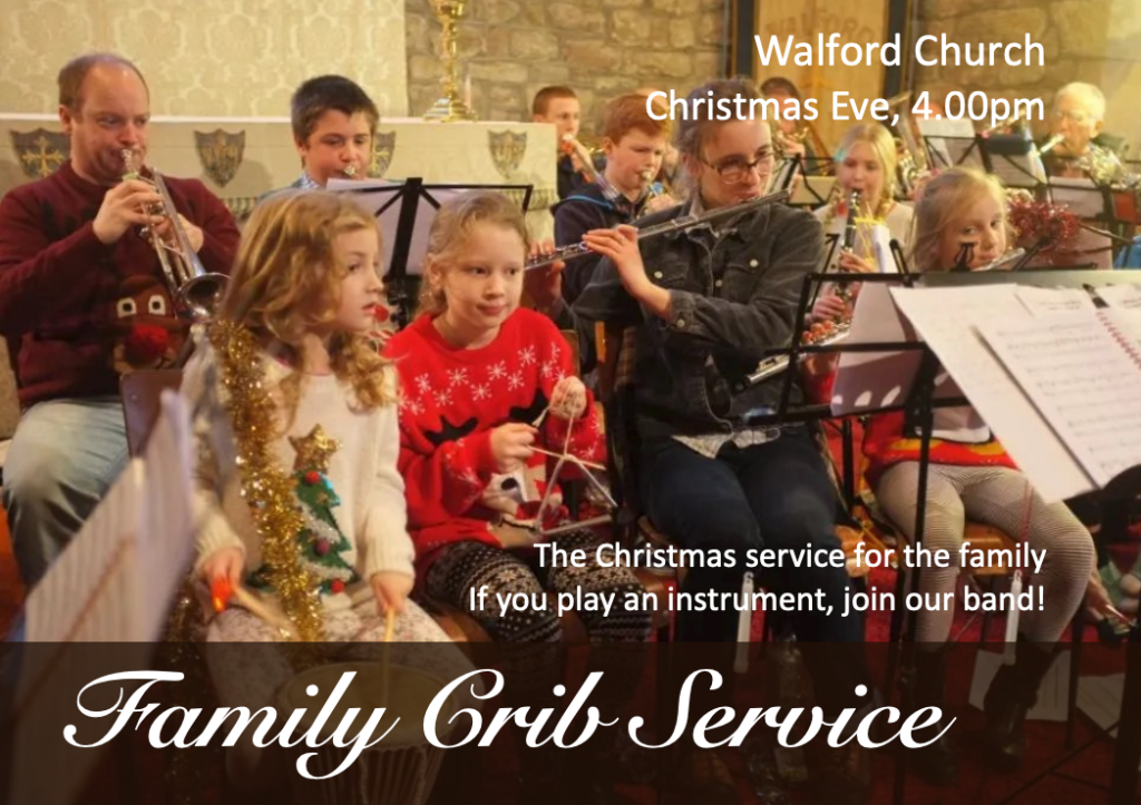 Christmas Eve: Family Crib Service at 4.00pm in both churches, Midnight Mass in St Mary’s at 11.30pm