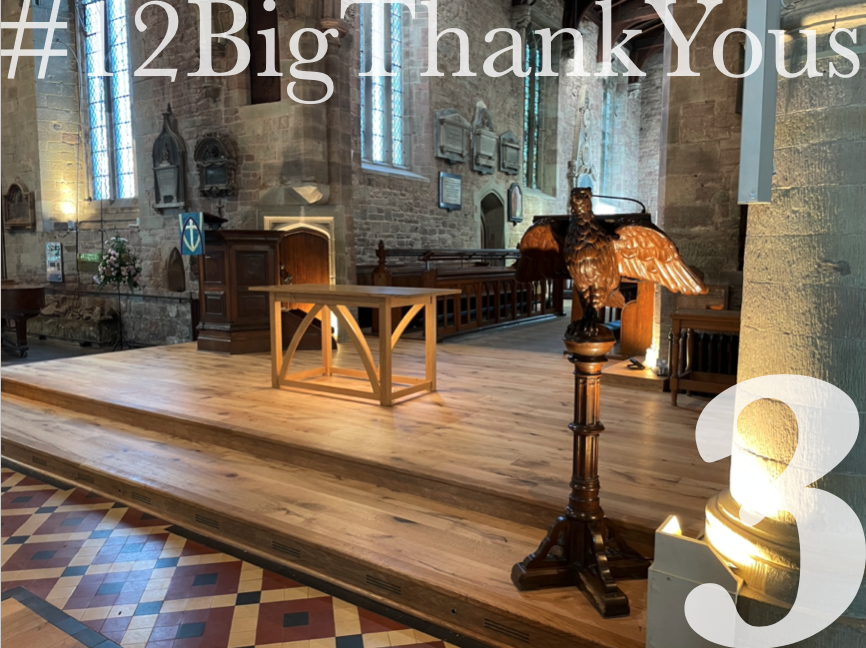 This year we enlarged and improved the platform at the top of the nave; it’s been of real value over the last few weeks. Thanks to all who helped us to pay for that. The William Allen Young Charitable Trust (£5,000), Herefordshire Historic Churches Trust (£5,000), Edward Cadbury Charitable Trust (£3,000), and Ross-on-Wye Town Council (£1,000). The Friends of St Mary’s (£3,000).