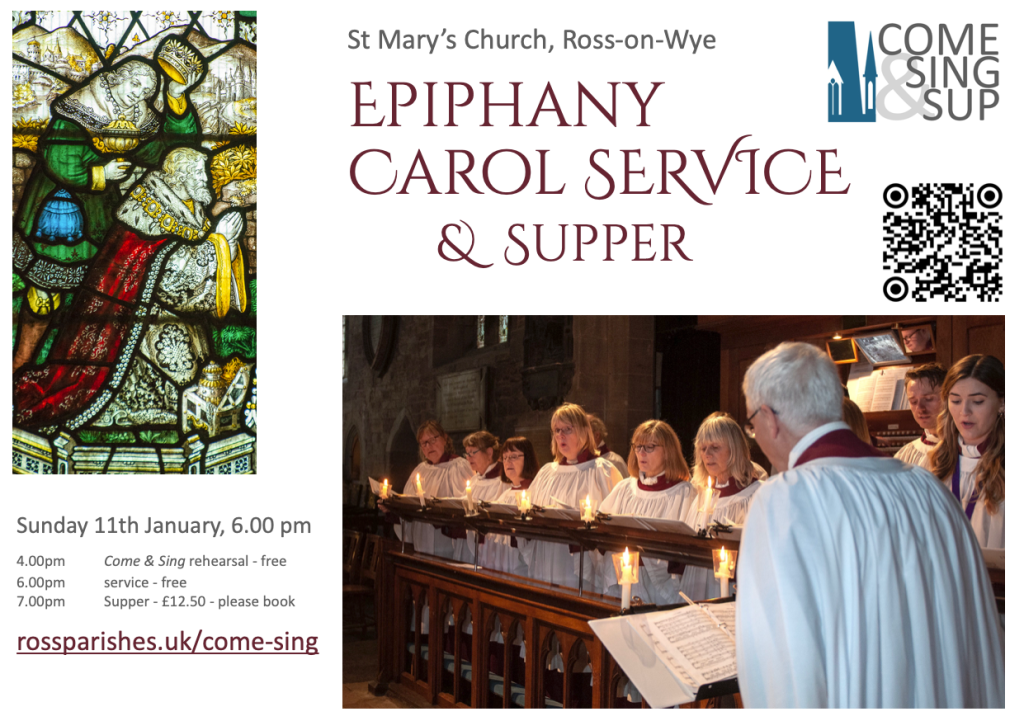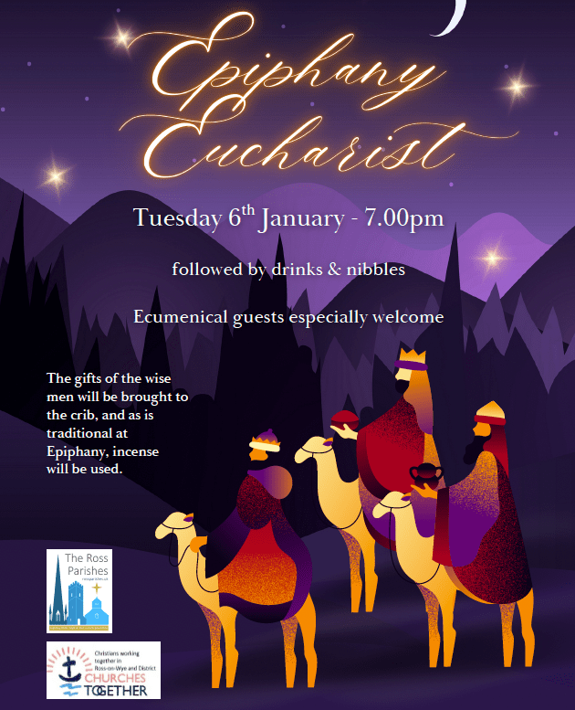 The party continues on Sunday evening when we have a Come, Sing & Sup Epiphany Carol Service. All are welcome to join the special choir when it rehearses at 4.00pm or to come along to the service which starts at 6.00pm. Unfortunately the supper is now fully booked. It will be a great service, featuring Ruth Cartledge (harp) for some of the accompaniments. Full details at https://rossparishes.uk/come-sing