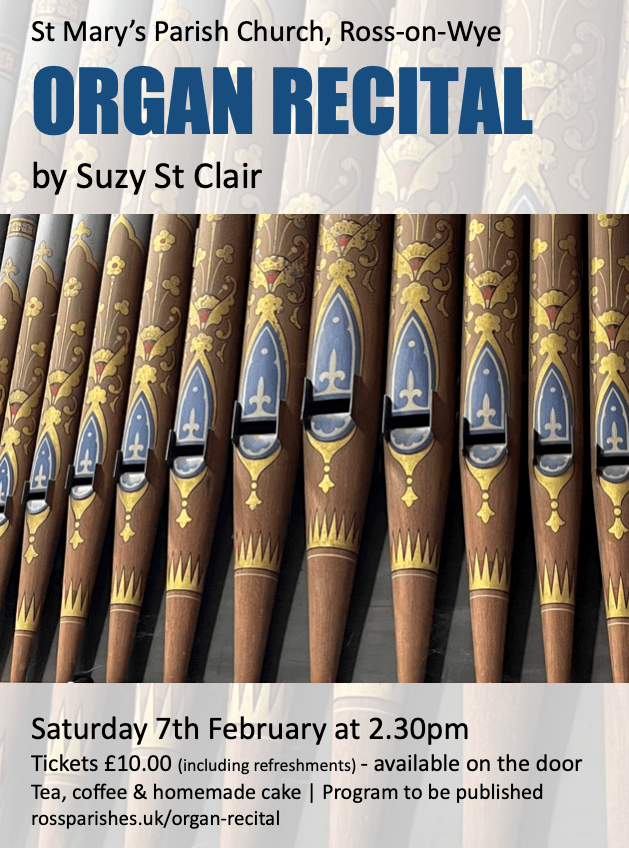 Join us at St Mary’s on Saturday 7th February when Suzy St Clair returns for another recital.