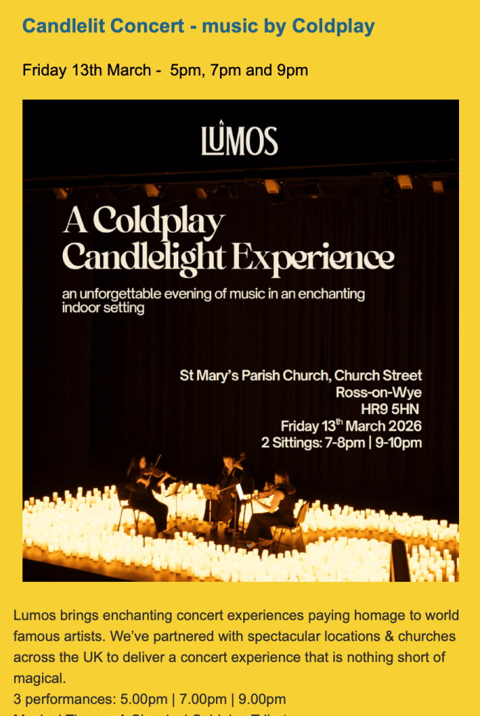 There’s a choice of focus for our Sunday services this week. At Walford the theme will be St David, at St Mary’s we’ll be following the theme for the Second Sunday in Lent in an All Age Eucharist. We hope to see you at one of these.