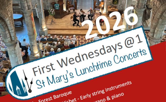 The 2026 season of free lunchtime concerts – First Wednesdays @ 1 – begins today (Wednesday 1st April). We welcome our friends from Forest Baroque.