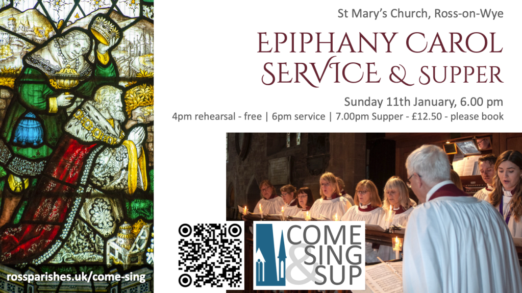 Before we get too deep into Christmas, here’s a bit of forward planning for you with an opportunity to think of Epiphany and Candlemas in The Ross Parishes. Perhaps you’d like to Come, Sing & Sup with us on Sunday 11th January?