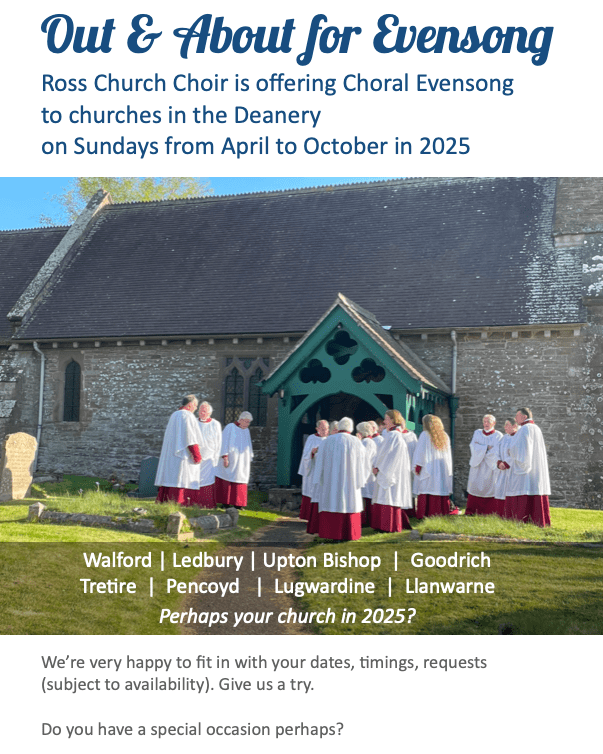 Marches Music Ministry is a collective of musicians and choirs from across Herefordshire, Shropshire and the Welsh Marches area. It has been formed because we need to close the local Royal School of Church Music group, following changes in the national organisation of the RSCM.