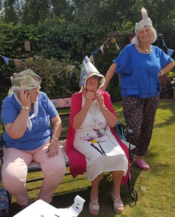 August 2019 – Mothers’ Union members were in holiday mood at the August meeting which took the form of a garden party at a member’s home. There was much hilarity and creativity as members were challenged to make a sunhat using one sheet of newspaper and 3 pins. Earlier in the day it looked as though a hat would not be needed but the sun shone brightly and weird and wonderful creations were made. After the ‘exertions’ a delicious tea was very welcome. Whilst the aims and objects of the Mothers’ Union are serious we also find time to laugh and enjoy each other’s company.