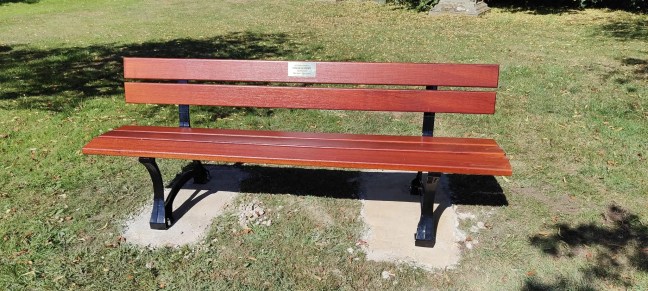The bench has been given by Derek and sited close to a place where most recently she loved to sit and rest on her way to church and to the town. We are grateful to Alan Sonn for his work on installing it.