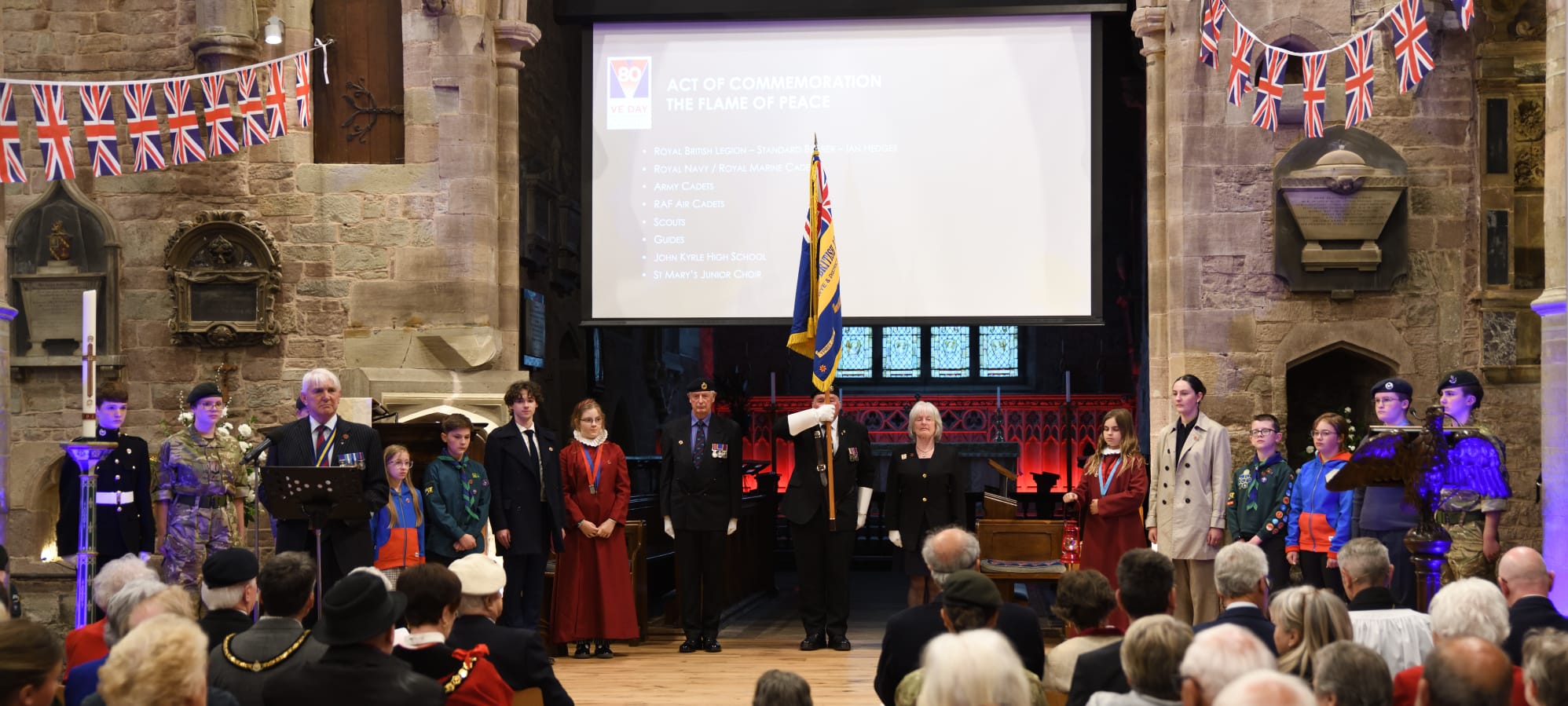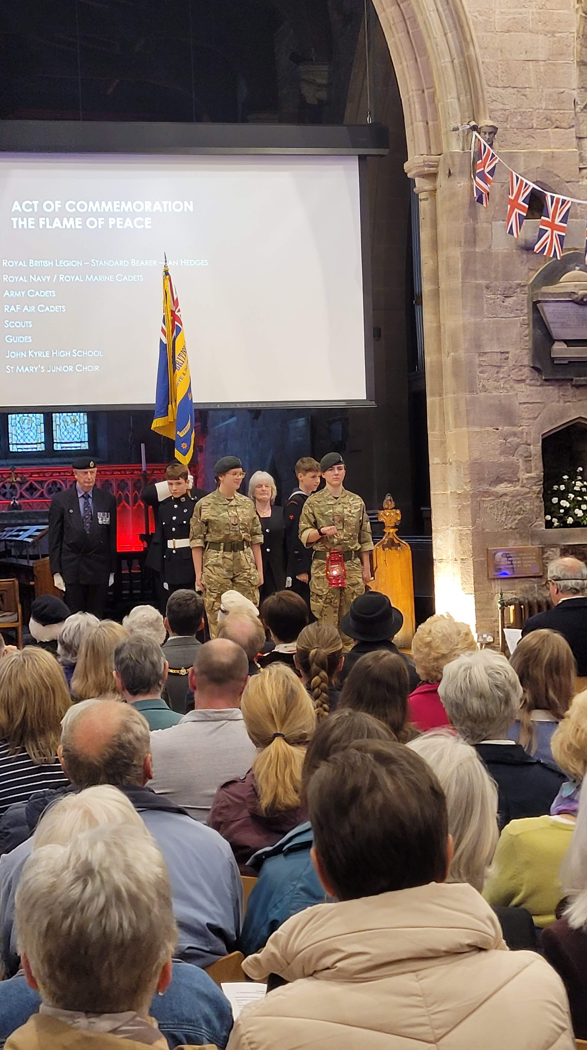 As the country celebrated 80 years since VE Day, St Mary’s joined in with two major events. On Sunday 4th May, the church hosted a 1945 style afternoon Tea Dance with Monmouth Swing Band. On 8th May, the VE Day Story was told though a multi-media presentation of story-telling, music, pictures and song with moments of recollection, remembrance, ceremony and thanksgiving. Veterans and members of the Royal British Legion were joined by Scouts, Guides and Uniformed Military Cadets who received the Lamp of Peace and were charged with remembering the lessons of War.